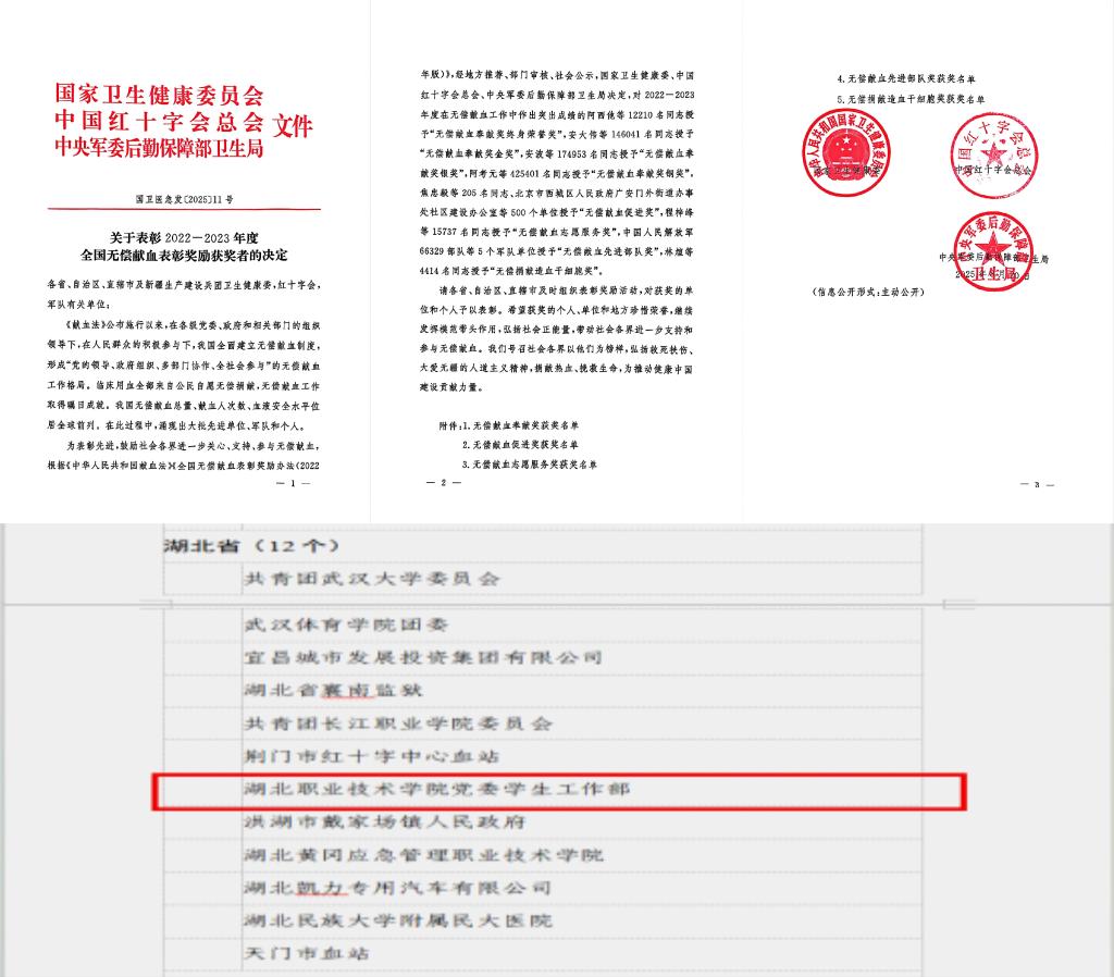 (本網(wǎng)訊 王欣怡)近日,國家衛(wèi)生健康委、中國紅十字會(huì)總會(huì)、中央軍委后勤保障部衛(wèi)生局聯(lián)合下發(fā)表彰通報(bào),對2022-2023年度在全國無償獻(xiàn)血工作中表現(xiàn)突出的先進(jìn)單位與個(gè)人予以隆重表彰,我校憑借在無償獻(xiàn)血公益事業(yè)中的扎實(shí)舉措與顯著成效,獲評“全國無償獻(xiàn)血促進(jìn)獎(jiǎng)”。這一國家級榮譽(yù)是對無償獻(xiàn)血工作的最高級別認(rèn)可,彰顯了我校在引導(dǎo)青年學(xué)子踐行公益、傳遞大愛方面的示范引領(lǐng)作用,標(biāo)志著學(xué)校無償獻(xiàn)血工作已躋身全國高校前列。