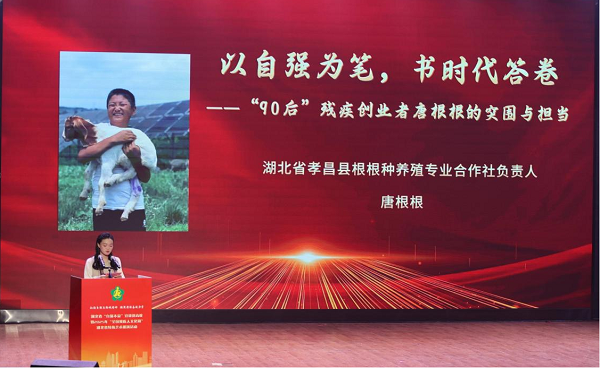身殘不墜青云志,返鄉創業破萬難。湖北省孝昌縣根根種養殖專業合作社負責人唐根根,患有先天肢體二級殘疾,四肢無力,身高不足1.5米,卻用羸弱身軀勇挑脫貧重擔。求職屢屢碰壁后,他毅然返鄉創立生態羊場,創新“純牛奶哺育羊羔”“四季防疫”等科學養殖技術,將最初僅有的40只羊,逐步發展成擁有千只規模的合作社,年收入突破90萬元。不僅如此,他還心系鄉鄰,免費為21戶殘疾貧困戶贈送母羊、傾囊相授養殖技術,帶動每戶年均增收3600元。這名“90后”從昔日需要幫扶的貧困戶,轉身成為帶領群眾脫貧致富的“領頭羊”,他用彎曲卻堅毅的脊梁,為鄉親們撐起了一片充滿希望的小康天地。在2025年第七次全國自強模范暨助殘先進表彰大會上,湖北省孝感市孝昌縣根根種養殖專業合作社負責人唐根根獲評“全國自強模范”。