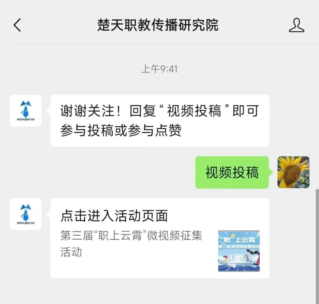 2.回復(fù)“視頻投稿”并點擊鏈接進入活動主頁
